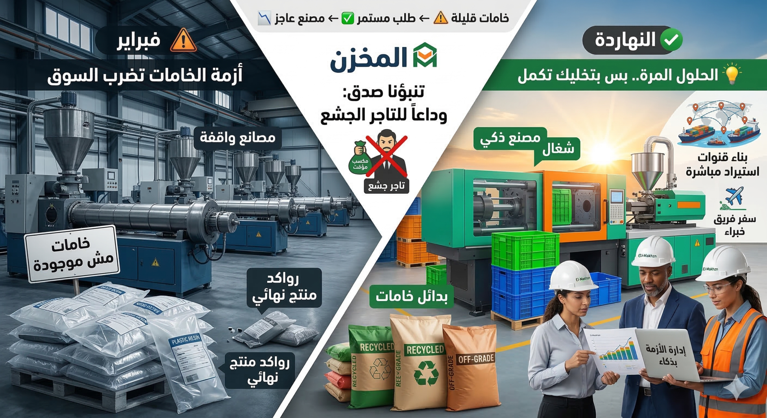 الخلاصة من وجهة نظر المخزن: الأزمة دي هتصفي السوق من “الهواة”. التاجر الجشع هيكسب كتير “دلوقتي”، بس هيخسر المصنعين “للأبد”. والمصنع الذكي هيستخدم التاجر ده بشكل مؤقت كـ “مسكن”، لكنه بيطبخ دلوقتي حل جذري يغنيه عنه تماماً.